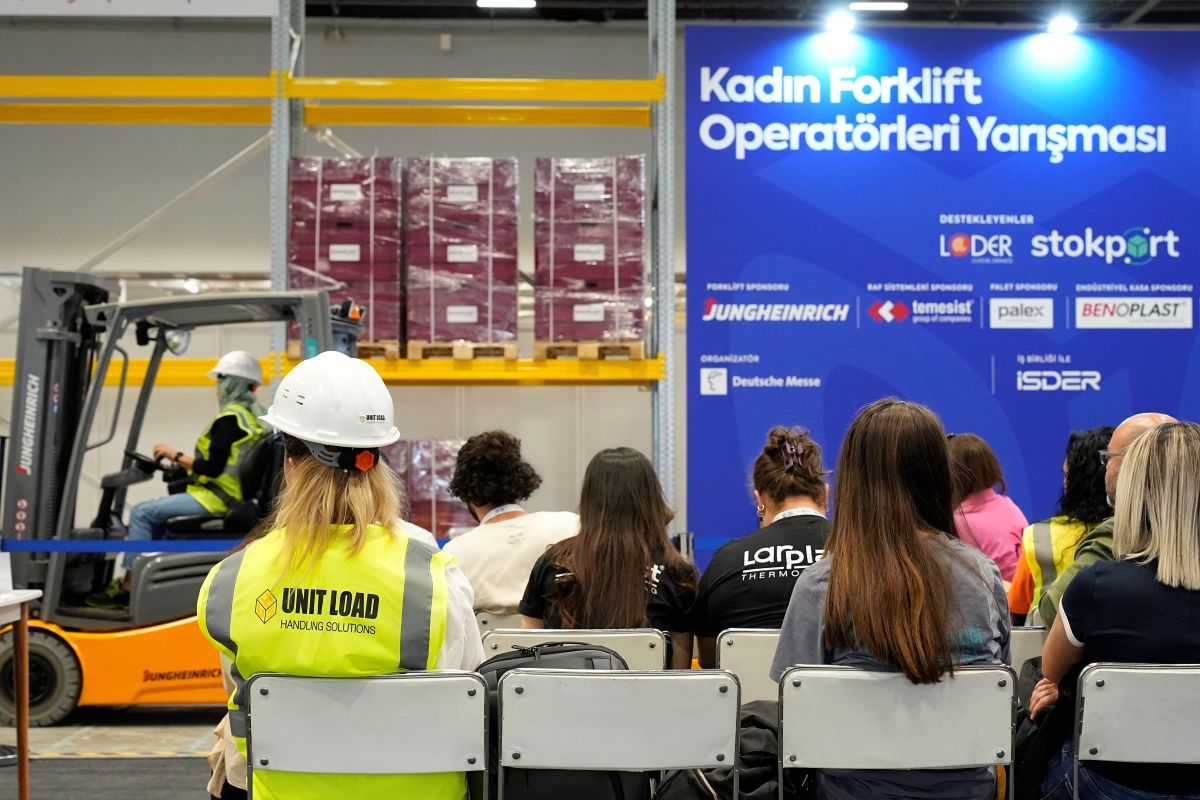 Fuarın en dikkat çeken etkinliklerinden biri Kadın Forklift Operatörleri Yarışması oldu. LODER ve Stokport iş birliğiyle düzenlenen yarışmada, kadın forklift operatörleri güvenlik, hız, hassas manevra ve yükleme alanlarında yetkinliklerini sergiledi.